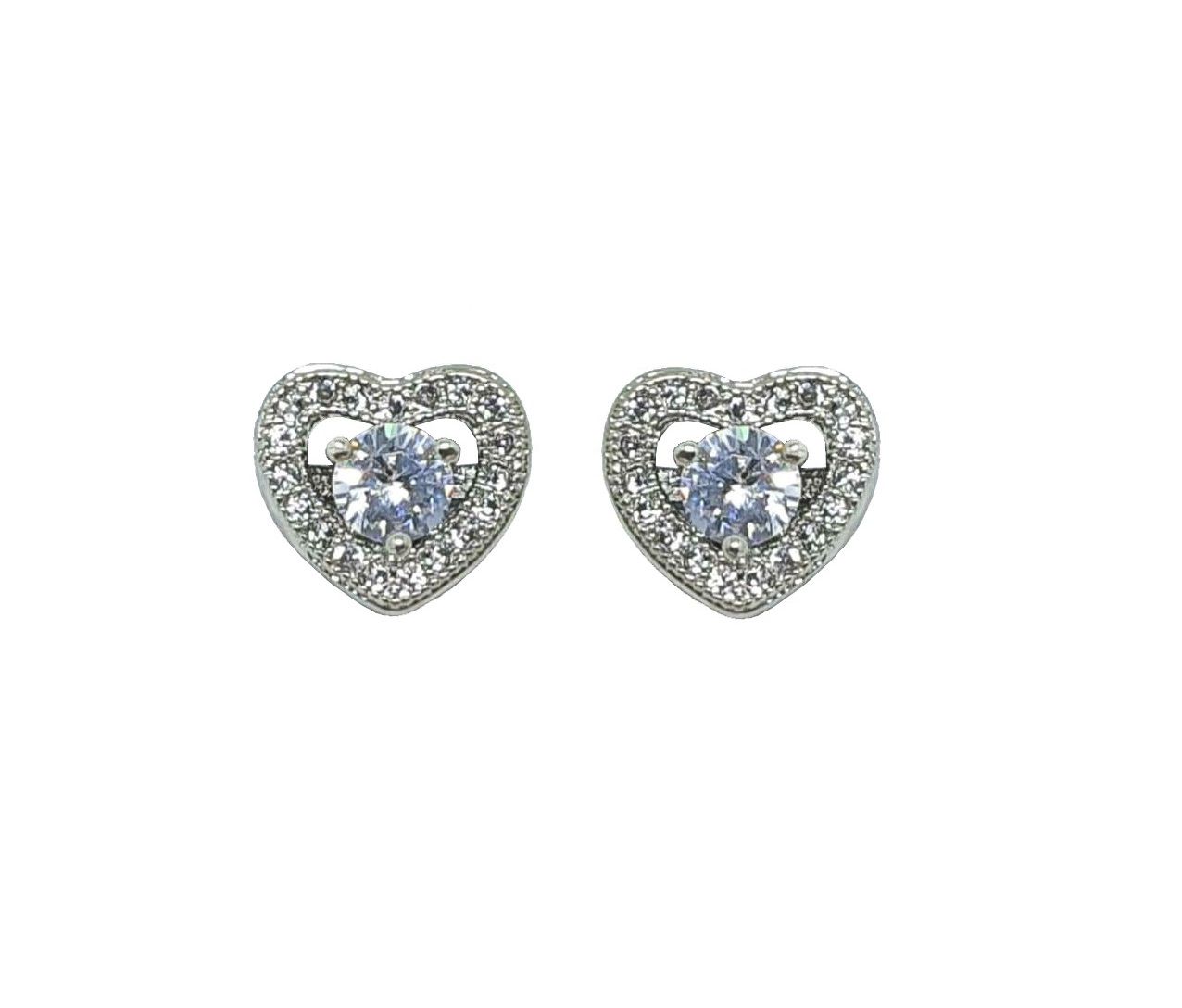 BRINCO CORAÇÃO COM CRAVAÇÃO BANHADO A RÓDIO BRANCO