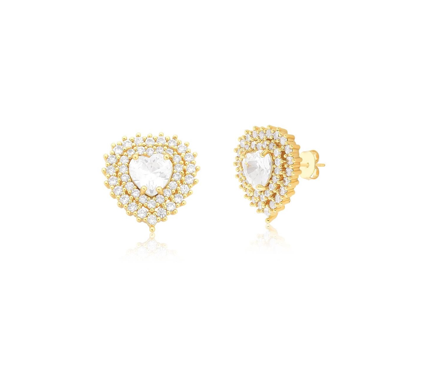 BRINCO CORAÇÃO COM DUAS FILEIRAS LATERAIS BANHADO A OURO
