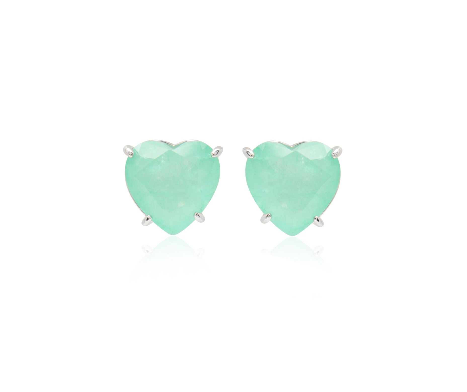 BRINCO CORAÇÃO ESMERALDA COLOMBIANA FUSION BANHADO A RÓDIO BRANCO