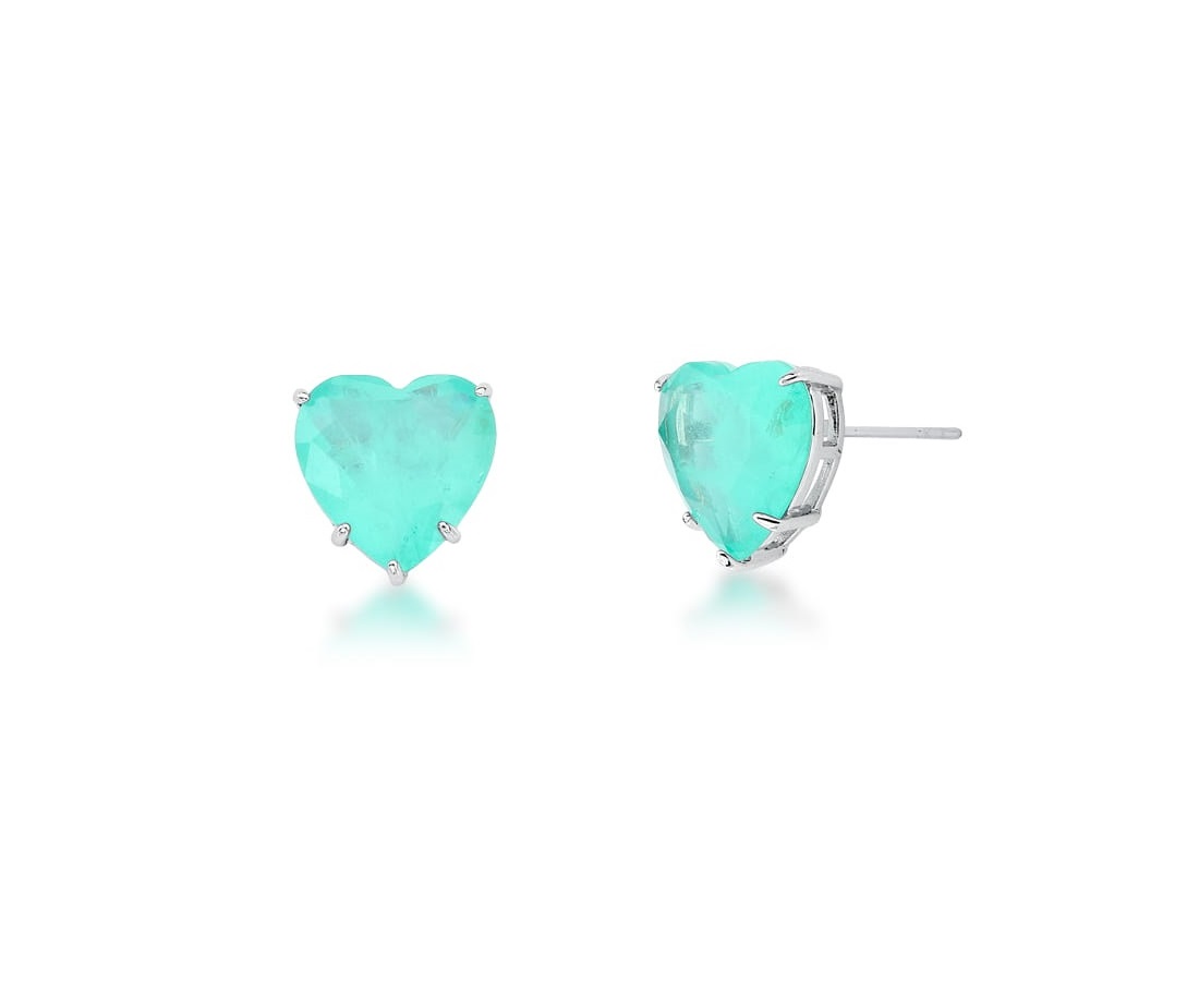 BRINCO CORAÇÃO G TURMALINA FUSION BANHADO A RÓDIO BRANCO