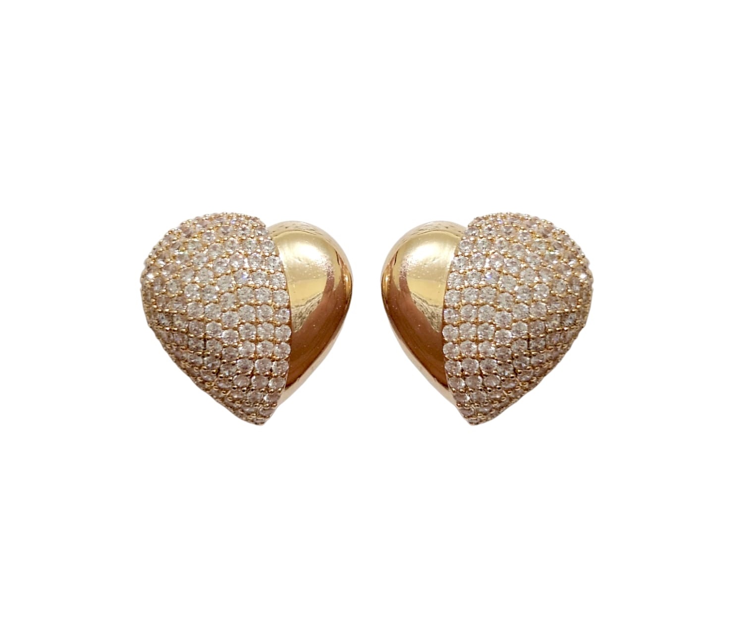 BRINCO CORAÇÃO GRANDE COM METADE CRAVEJADO BANHADO A OURO