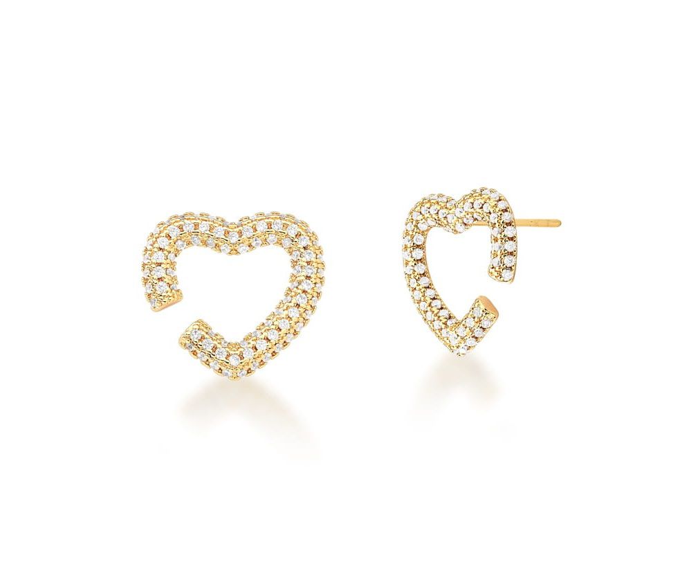 BRINCO CORAÇÃO VAZADO CRAVEJADO BANHADO A OURO