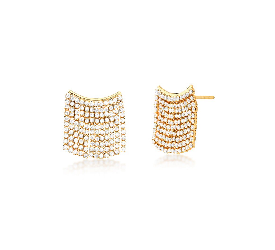 Sua compra garante a entrega de 01 BRINCO CURVO DE FRANJA RIVIERA BANHADO A OURO