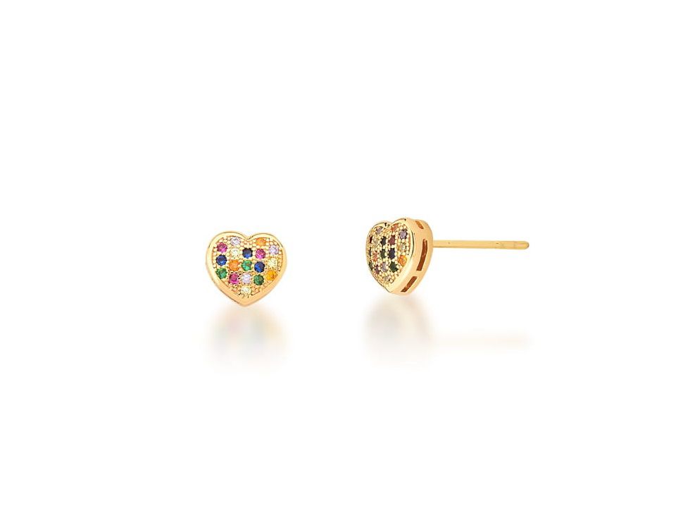 BRINCO DE CORAÇÃO COM CRAVAÇÃO COLORIDA BANHADO A OURO