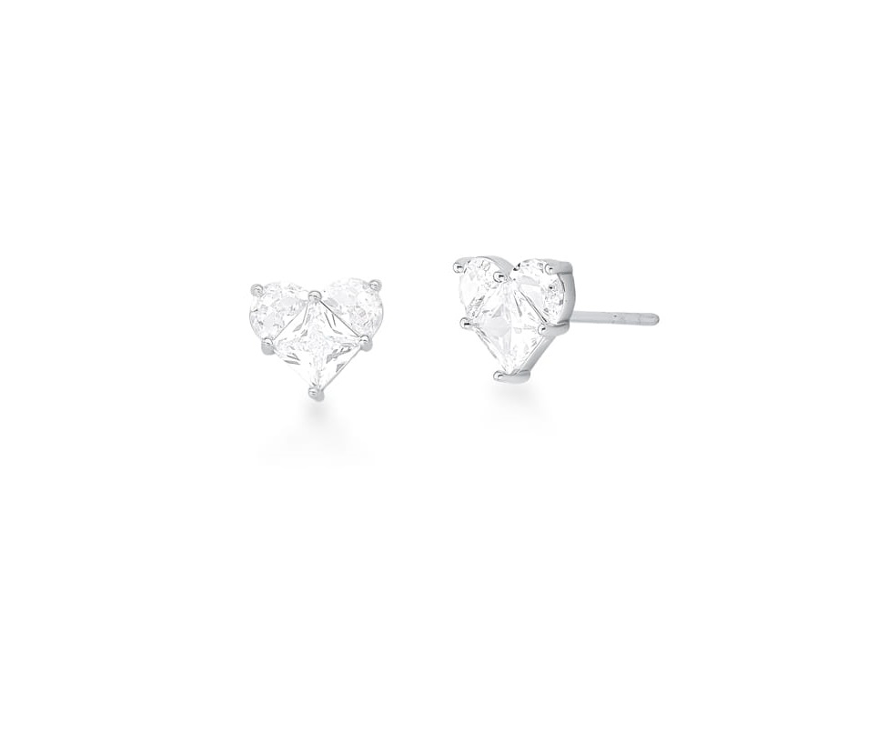 BRINCO DE CORAÇÃO COM ZIRCÔNIAS CRISTAIS BANHADO A RÓDIO BRANCO