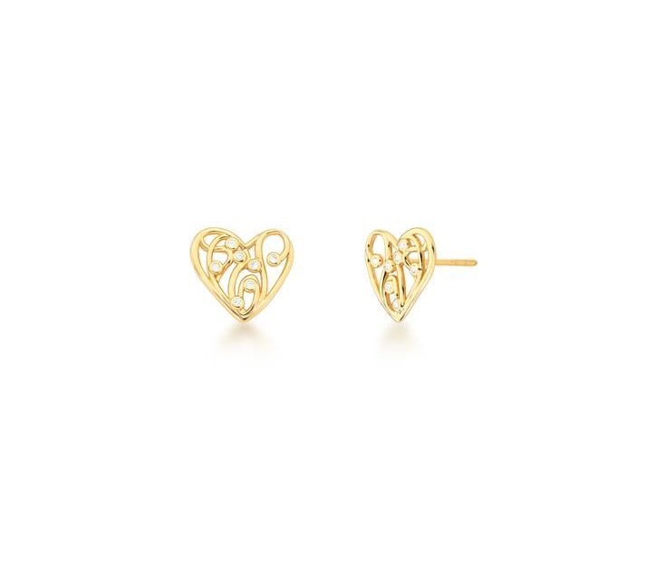 BRINCO DE CORAÇÃO VAZADO COM PONTOS DE ZIRCÔNIA BANHADO A OURO