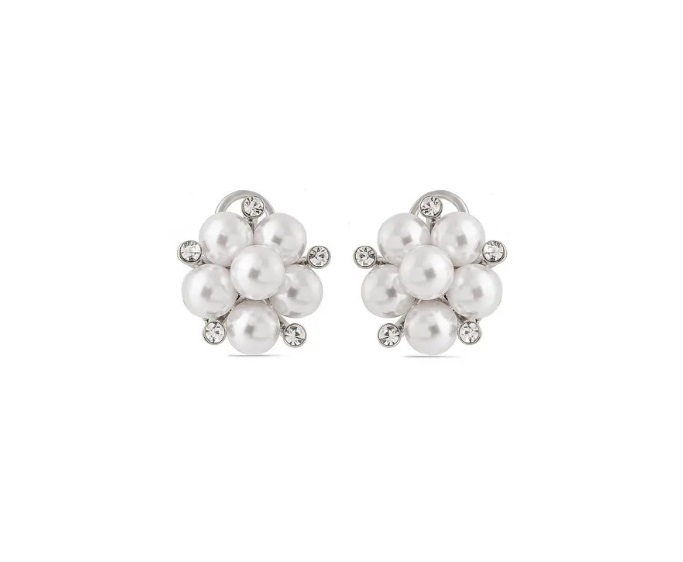 Brinco de Pérola com Pontos de Zircônia Banhado a Ródio Branco