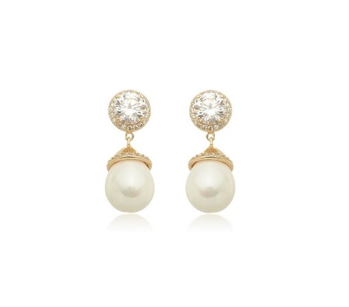 BRINCO DE PÉROLA EM PÊNDULO COM ZIRCÔNIAS REDONDA BANHADO A OURO