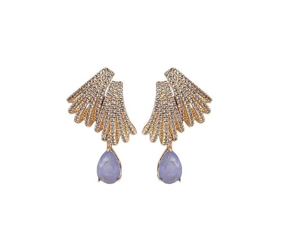 BRINCO DEZ VOLTAS E ANEL COM GOTA LAVANDA FUSION BANHADA A OURO