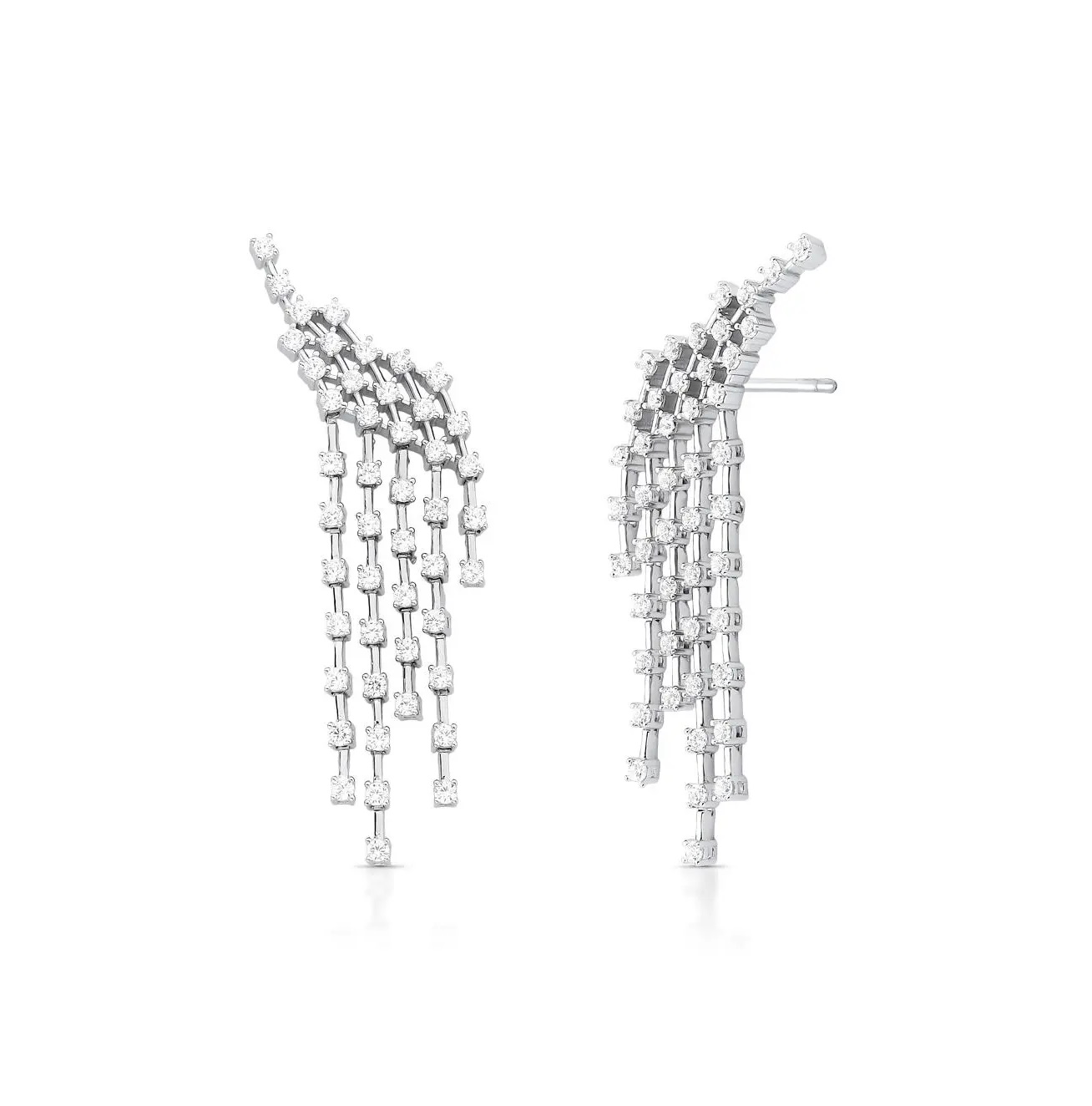 BRINCO EAR CUFF COM CRISTAIS EM PÊNDULO BANHADO A RÓDIO BRANCO