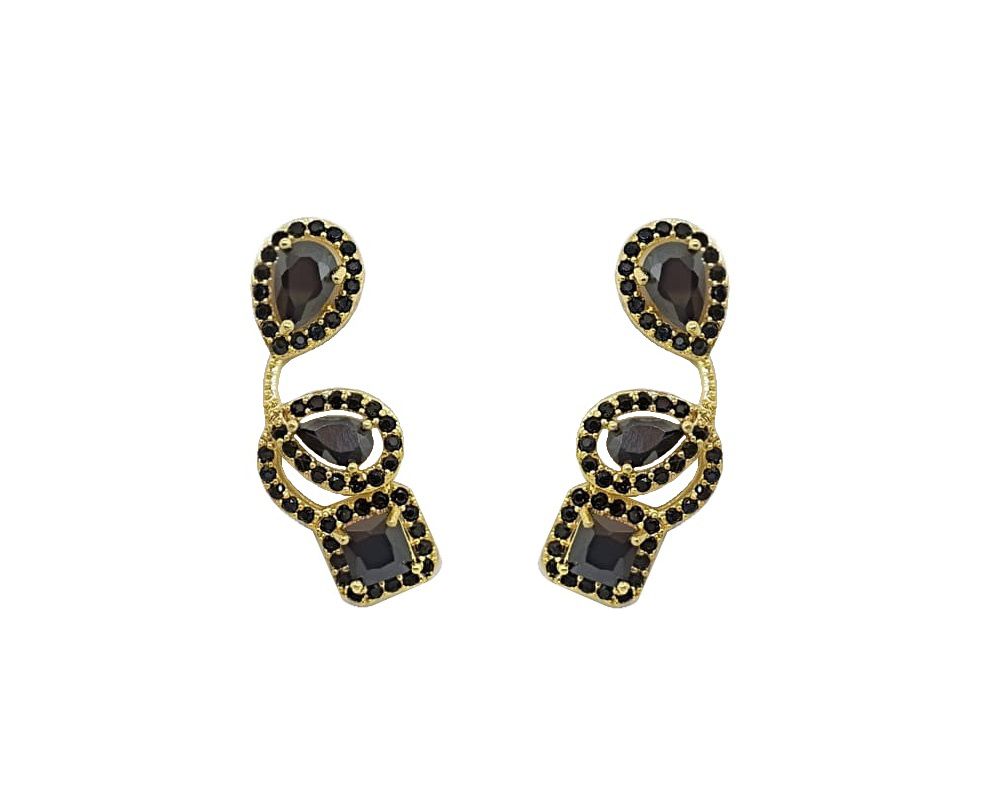 BRINCO EAR CUFF COM GOTA CENTRAL NEGRA BANHADO A OURO