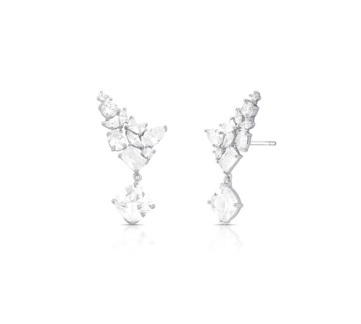 BRINCO EAR CUFF COM ZIRCÔNIA EM PÊNDULO BANHADO A RÓDIO BRANCO