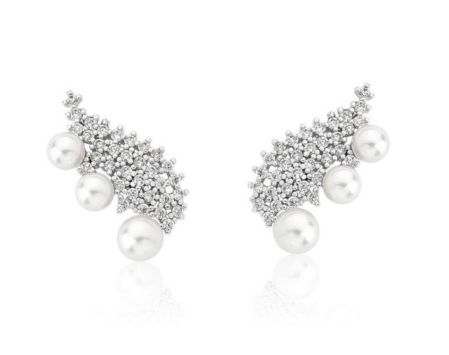 BRINCO EAR CUFF CRAVEJADO COM TRÊS PÉROLAS BANHADO A RÓDIO BRANCO