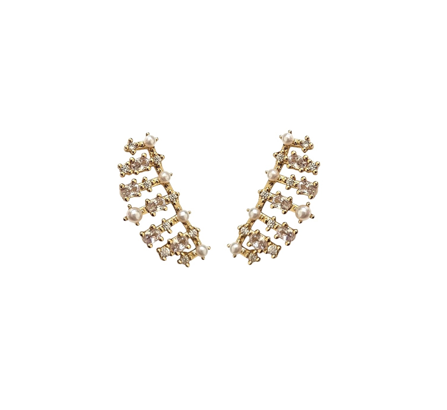 BRINCO EAR CUFF EM MICROPÉROLAS E ZIRCÔNIAS BANHADO A OURO