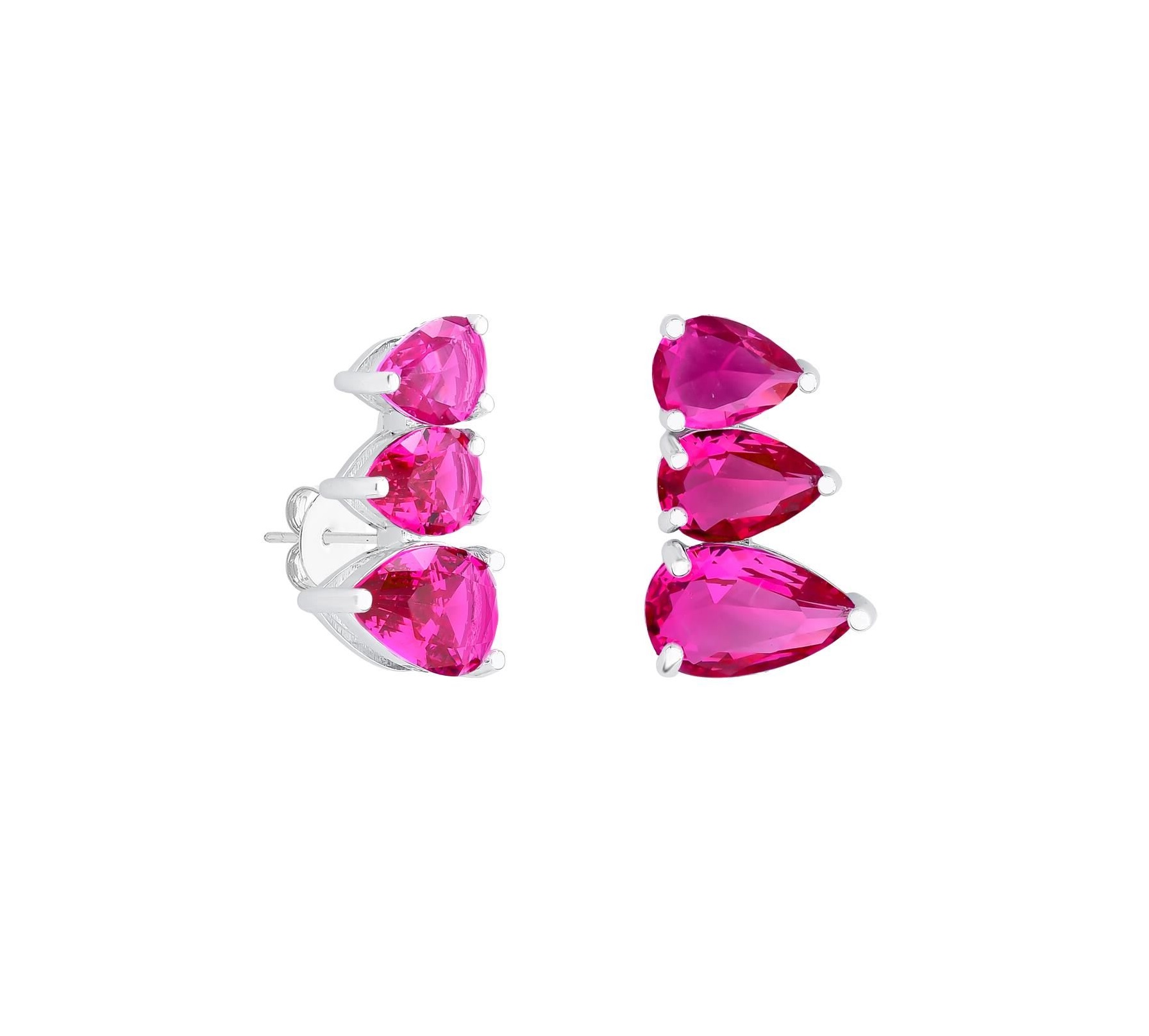 BRINCO EAR CUFF TRÊS GOTAS SAFIRA ROSA BANHADO A RÓDIO BRANCO