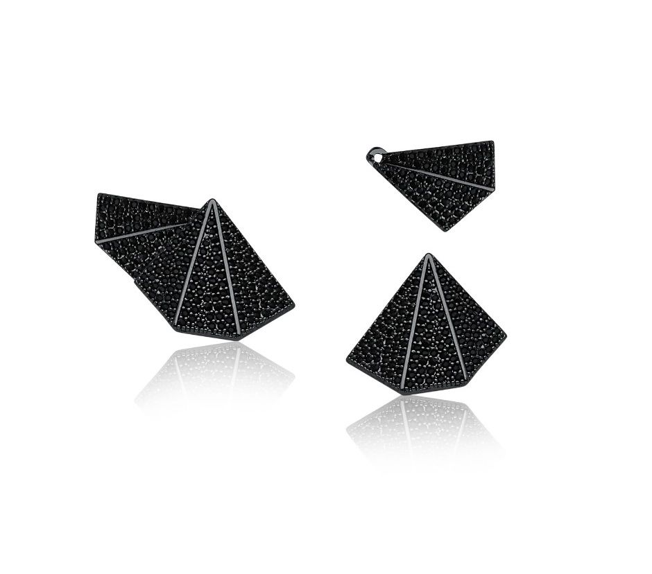BRINCO EAR JACKET TRIANGULAR CRAVEJADO BANHADO A RÓDIO NEGRO