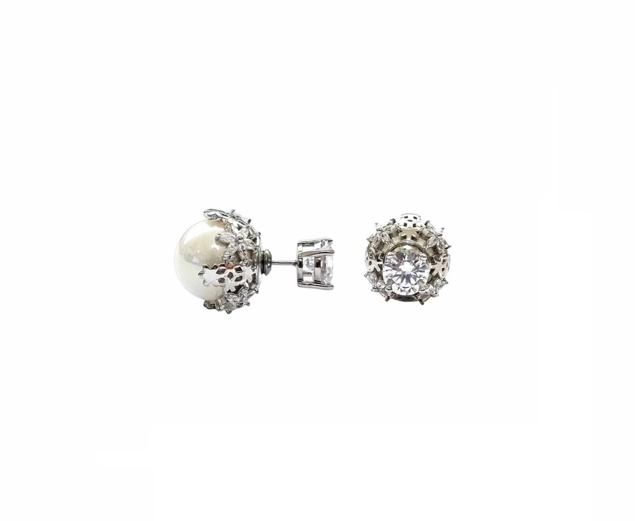 BRINCO EAR JACKET PÉROLA TRABALHADA COM PONTO DE LUZ BANHADO A RÓDIO BRANCO