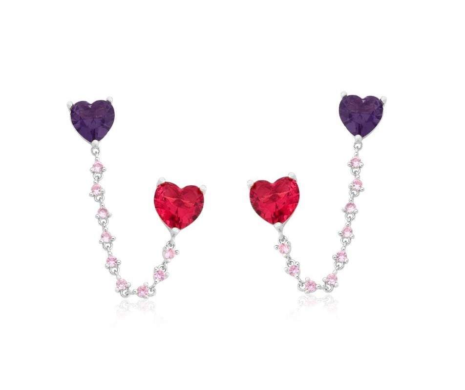 BRINCO EAR LINE CORAÇÕES COLORIDOS BANHADO A RÓDIO