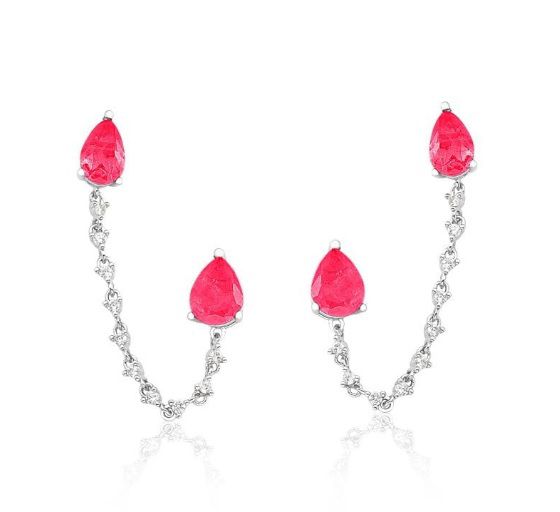 BRINCO EAR LINE DUPLO GOTA RUBELITA BANHADO A RÓDIO
