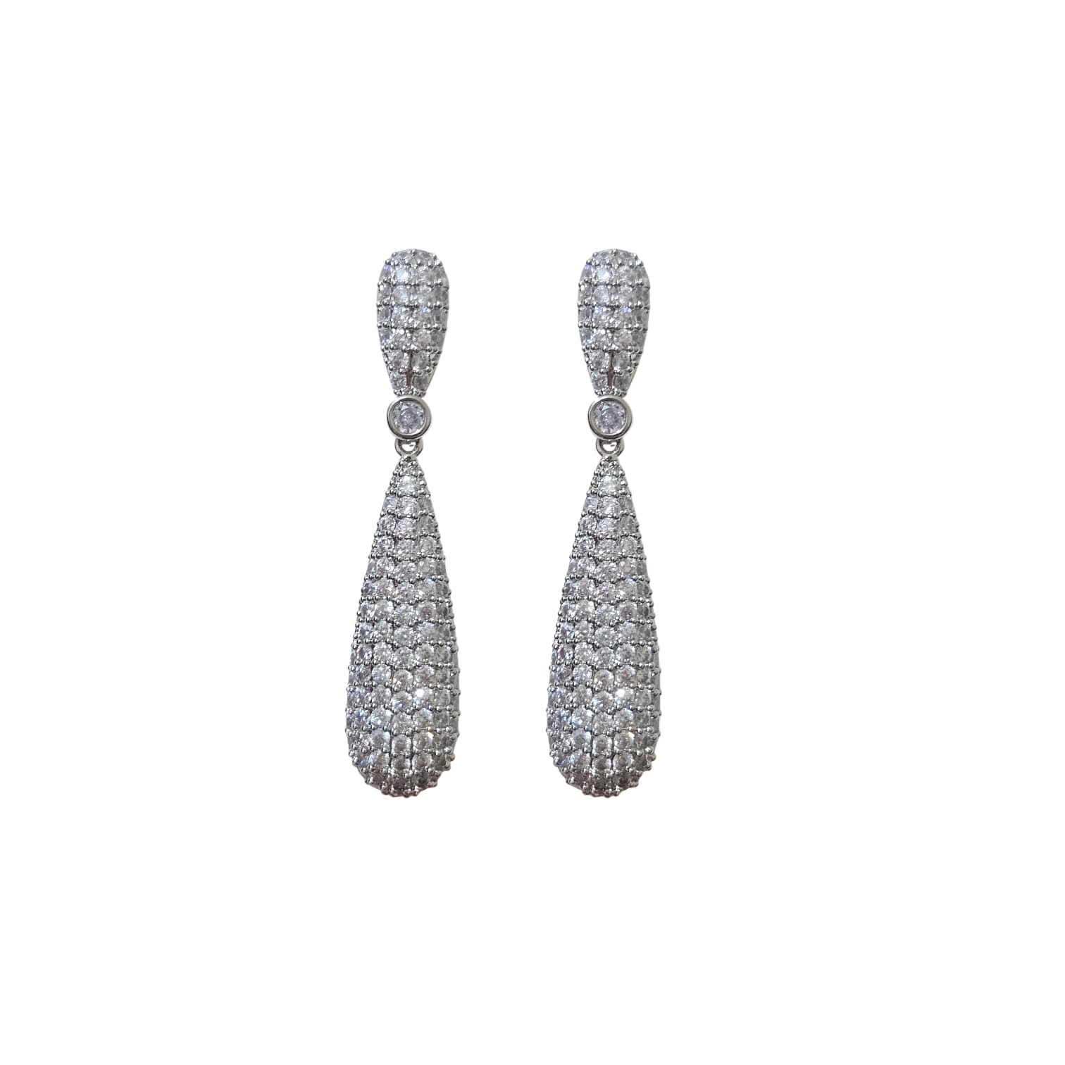 BRINCO EM PÊNDULO GOTAS CRAVEJADAS BANHADO A RÓDIO BRANCO