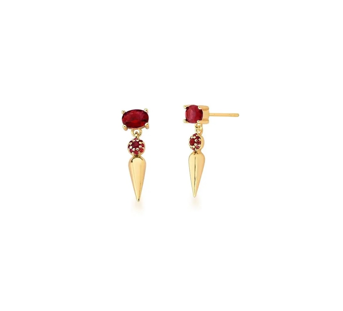 Brinco em Pêndulo Zircônia Rubi Banhado a Ouro