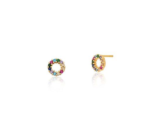 BRINCO REDONDO VAZADO COM CRAVAÇÃO COLORIDA LATERAL BANHADO A OURO