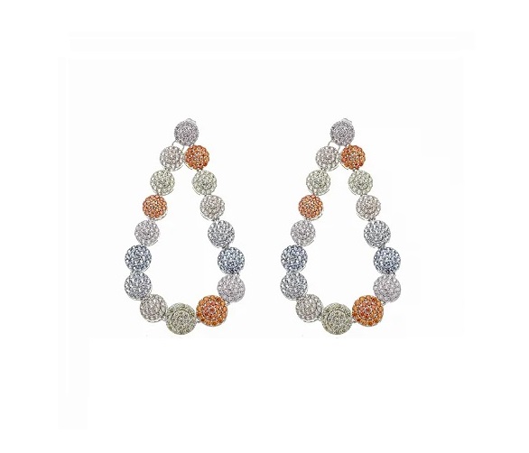 BRINCO ESFERAS CRAVEJADAS COLORIDAS BANHADO A RÓDIO BRANCO