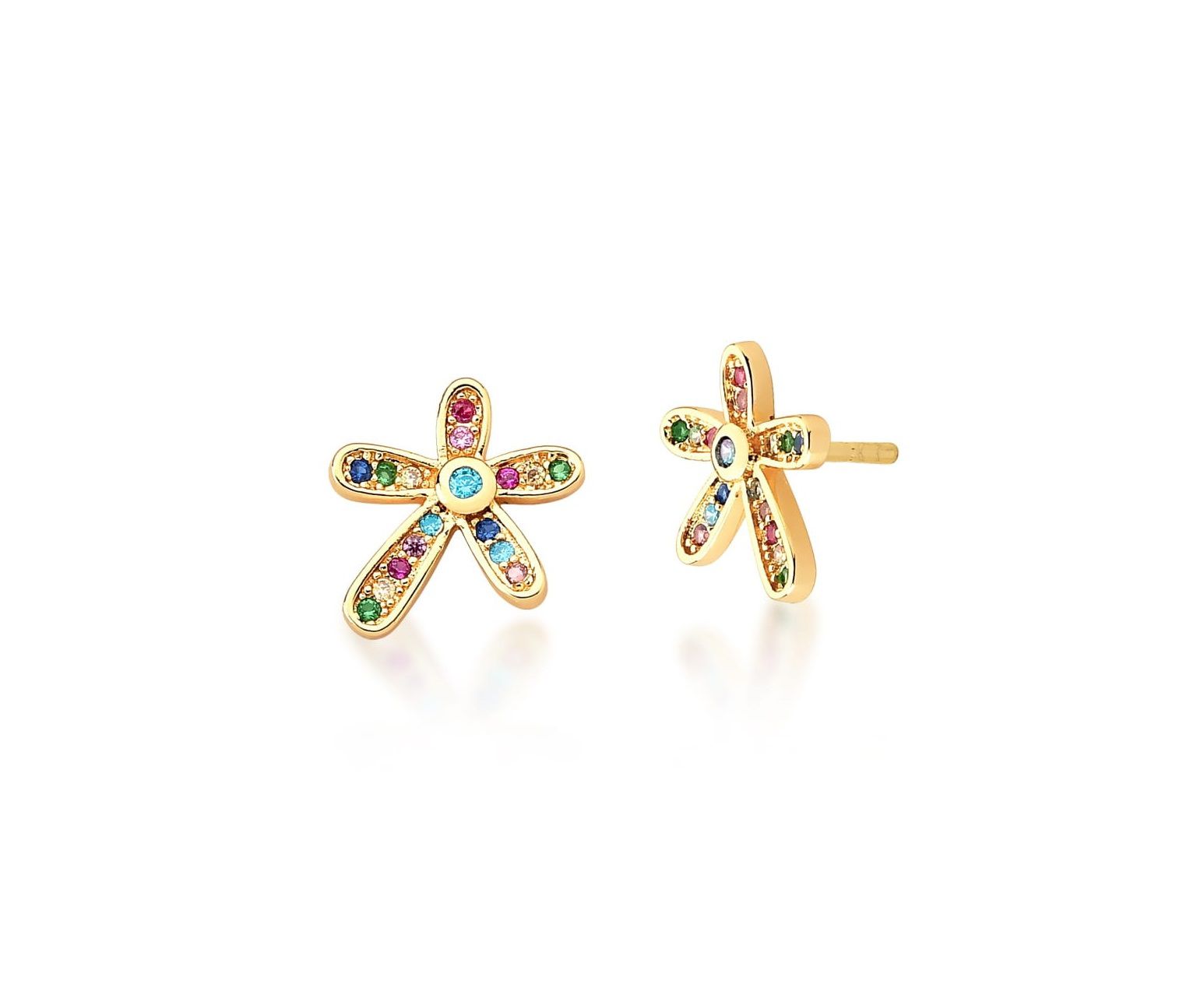 BRINCO FLOR COM CRAVAÇÃO COLORIDA BANHADA A OURO