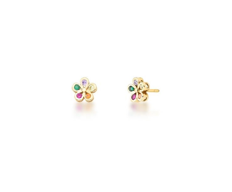 BRINCO FLOR CRAVAÇÃO COLORIDA BANHADO A OURO