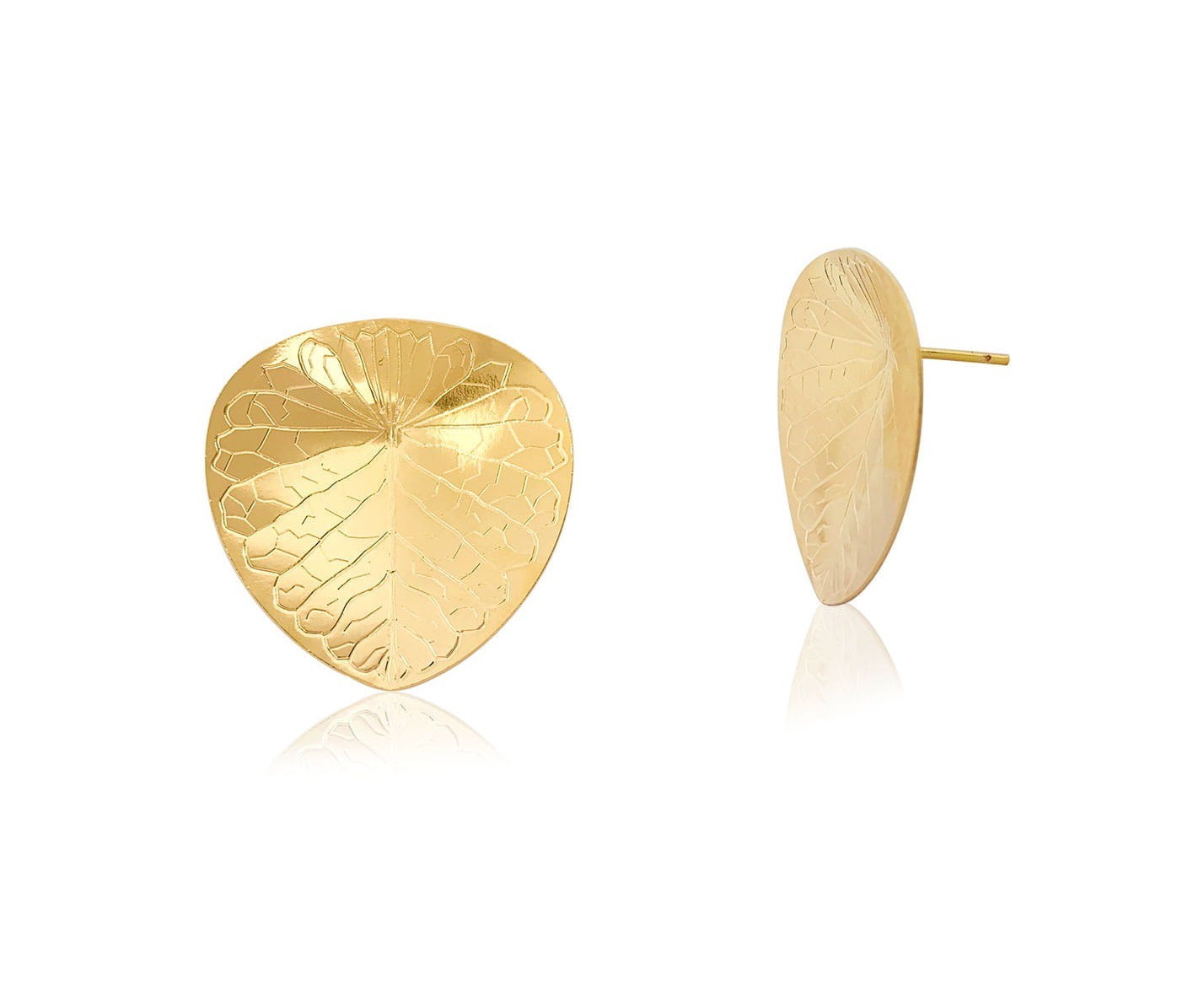 BRINCO FOLHA TRABALHADO LISO BANHADO A OURO