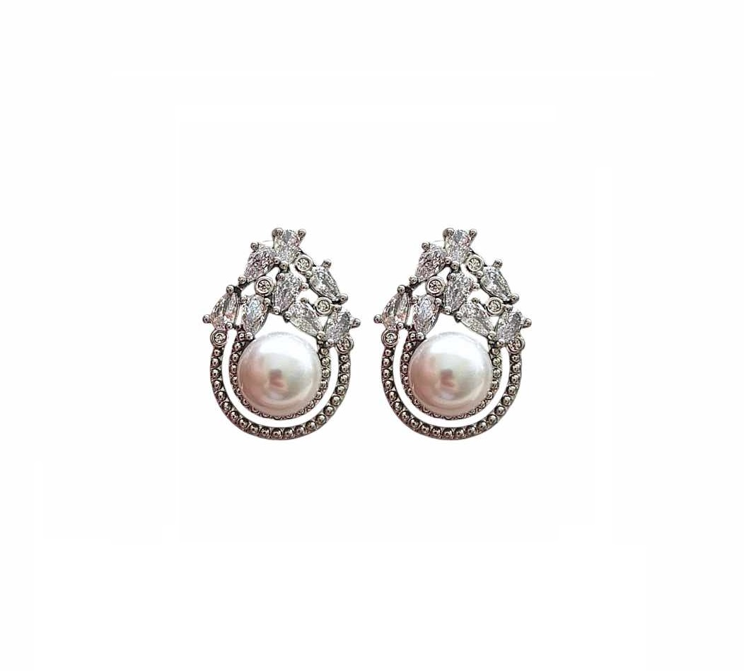 BRINCO GOTA COM PÉROLA CENTRAL E BASE CRAVEJADA BANHADO A RÓDIO