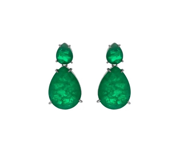 Brinco Gota Dupla em Zircônia Esmeralda Fusion Banhado a Ródio Branco