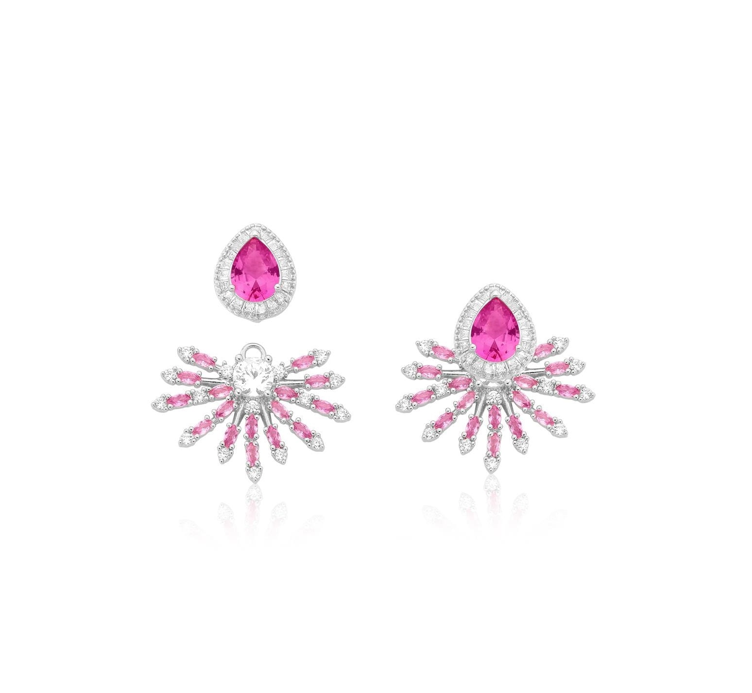 BRINCO GOTA SAFIRA ROSA BANHADO A RÓDIO BRANCO