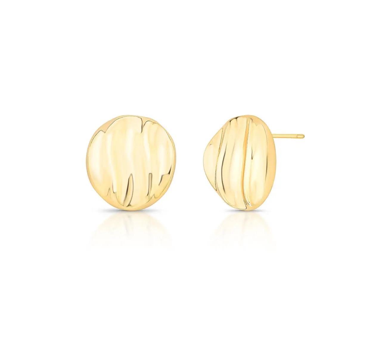 Brinco Liso Oval Texturizado Banhado a Ouro
