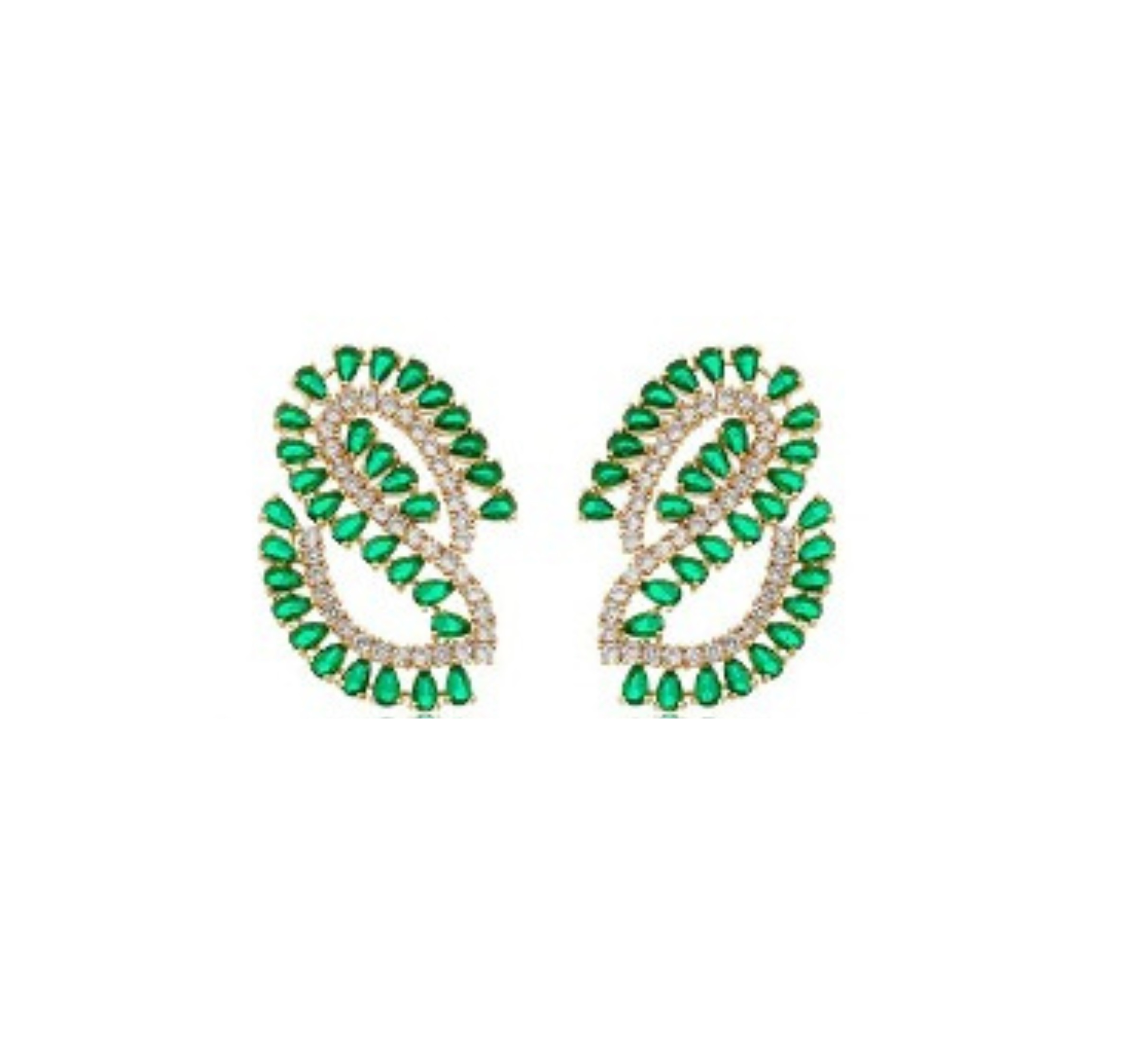 BRINCO LUXO CURVO COM CRAVAÇÃO ESMERALDA BANHADO A OURO
