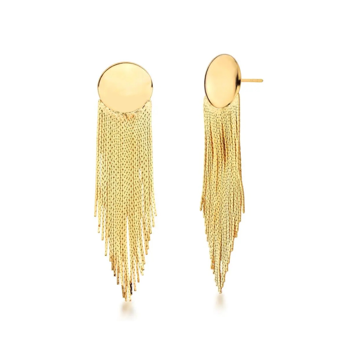 BRINCO MAXI PÊNDULO FRANJA COM BASE REDONDA BANHADO A OURO