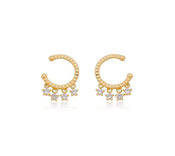 BRINCO MEIA LUA COM PONTOS DE LUZ BANHADO A OURO
