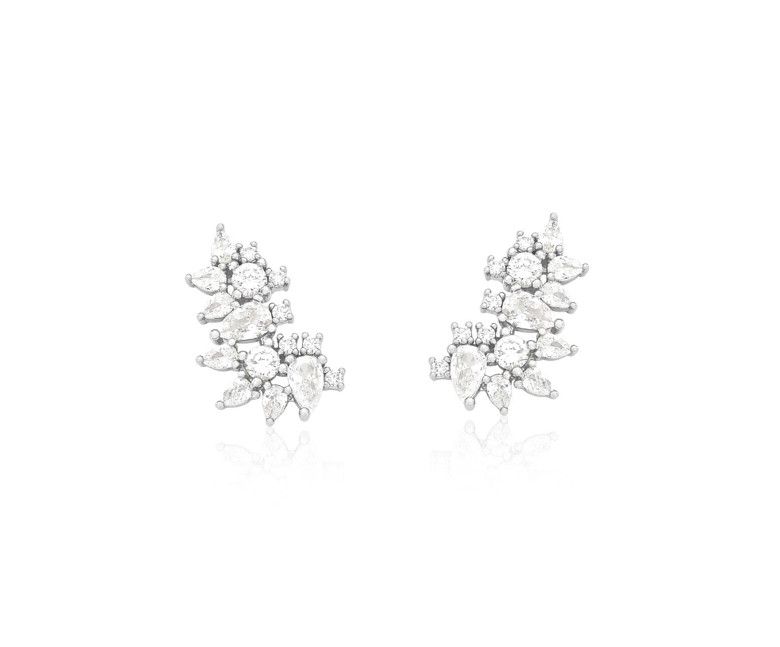 BRINCO MINI EAR CUFF GOTAS CRISTAIS BANHADO A RÓDIO BRANCO
