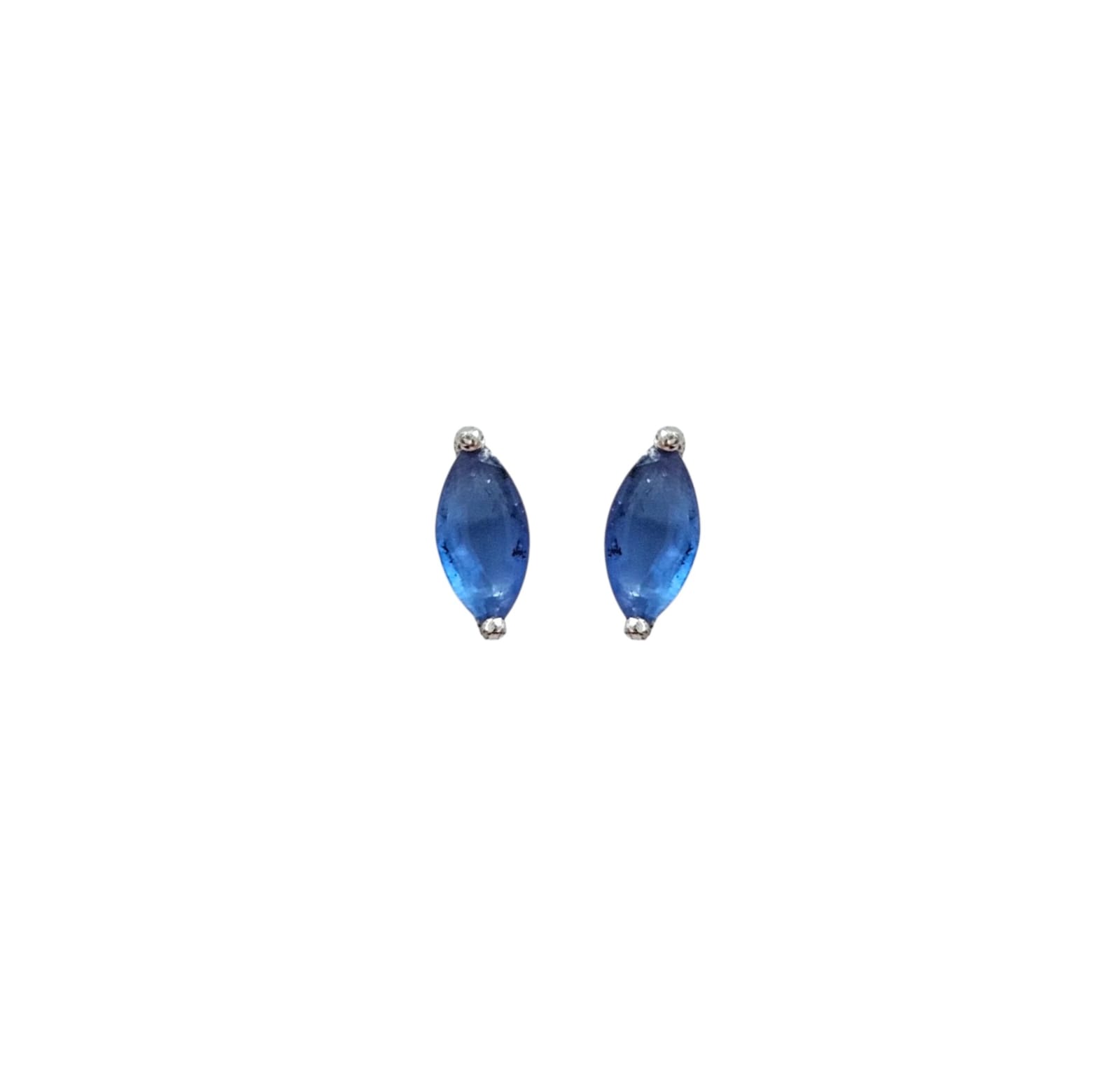 Brinco Navete Azul Pequeno Banhado a Ródio Branco