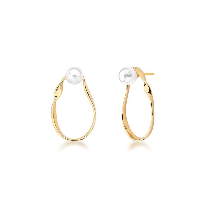 BRINCO ORGÂNICO VAZADO COM PÉROLA BANHADO A OURO