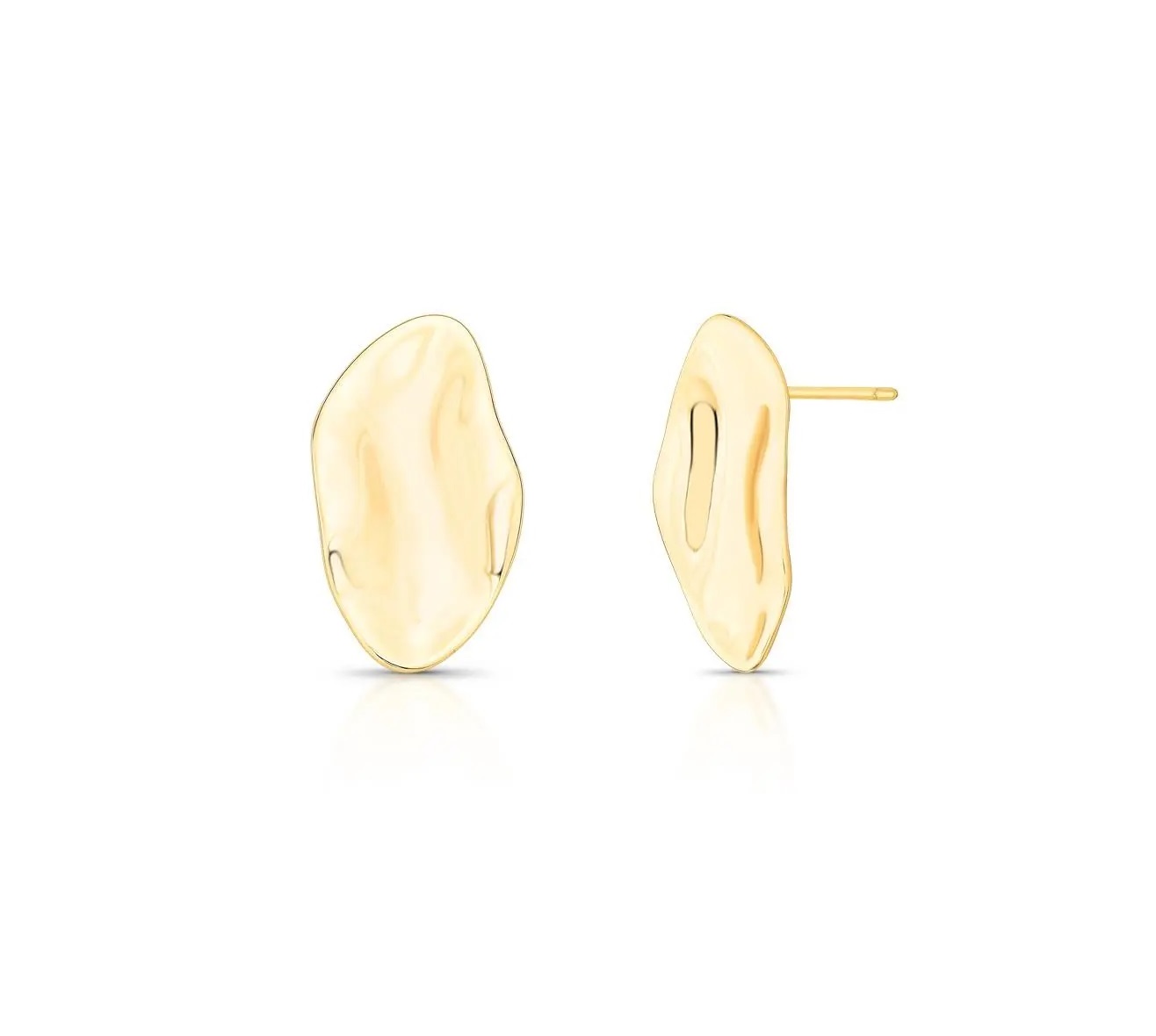 Brinco Ovalado Orgânico Liso Banhado a Ouro