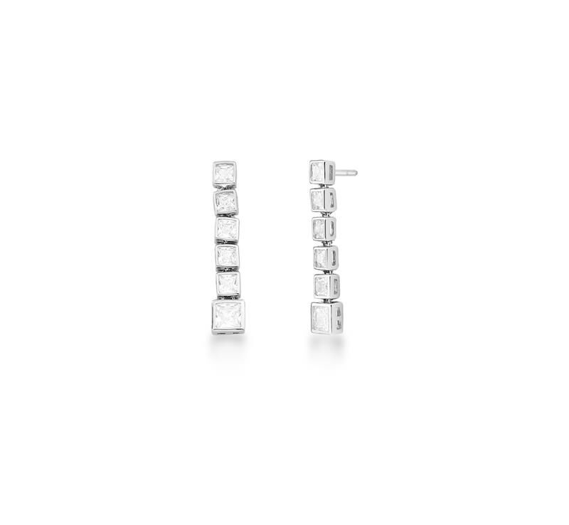 BRINCO PÊNDULO COM CRISTAIS QUADRADOS BANHADO A RÓDIO
