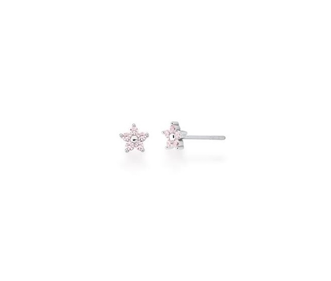 BRINCO PEQUENO DE ESTRELA COM ZIRCÔNIAS ROSAS BANHADO A RÓDIO