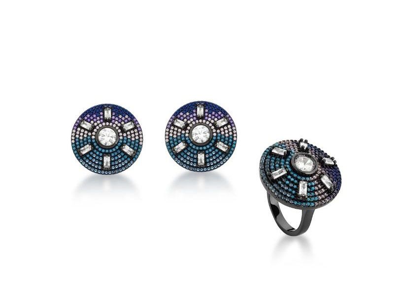 CONJUNTO PIZZA GRANDE COM CRAVAÇÃO COLORIDA BANHADO A RÓDIO NEGRO