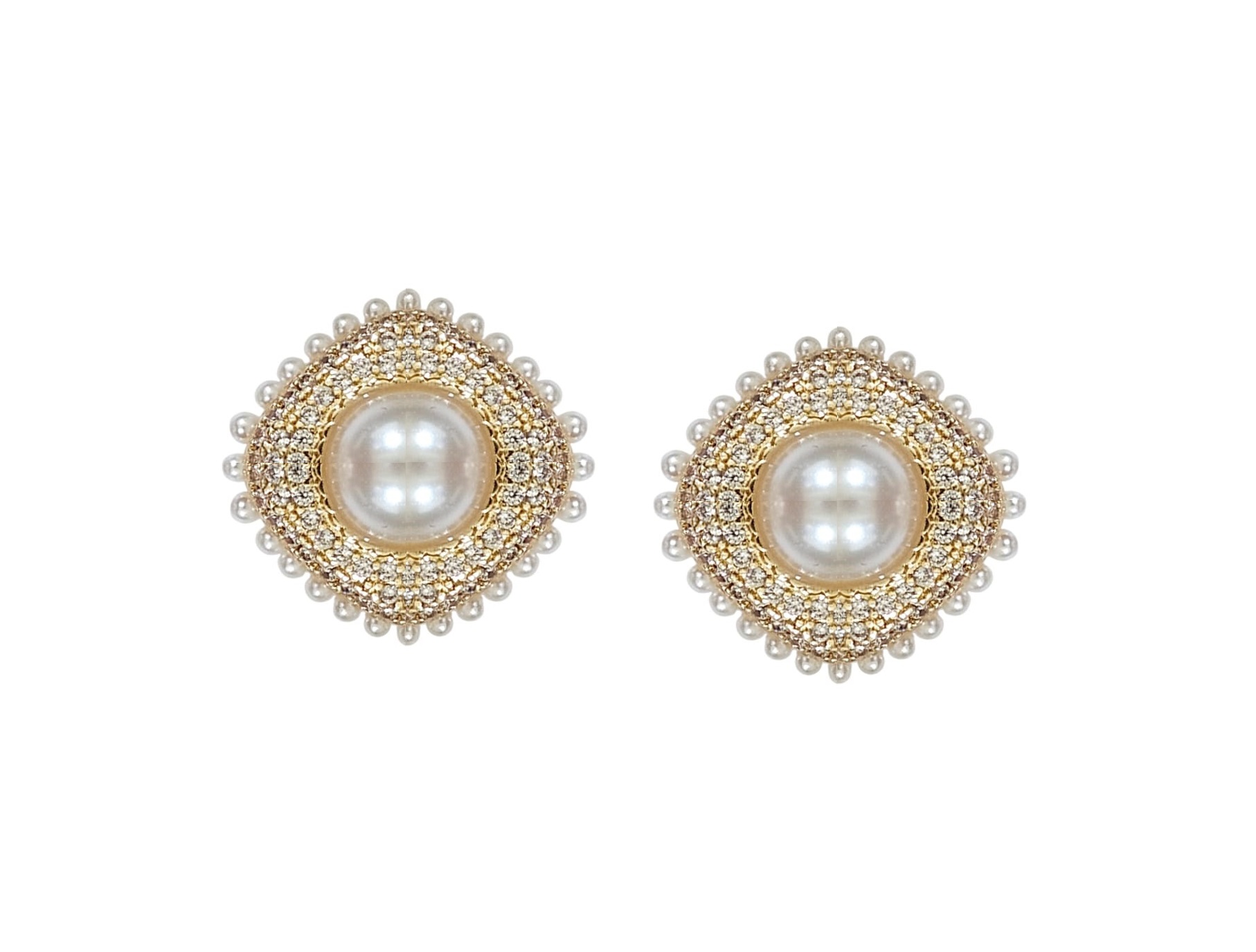 BRINCO QUADRADO COM PÉROLA CENTRAL BANHADO A OURO