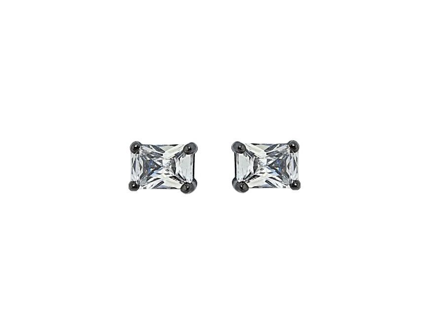 BRINCO RETANGULAR CRISTAL BANHADO A RÓDIO NEGRO