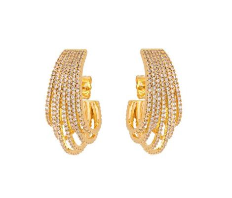 Sua compra garante a entrega de 01 Par do BRINCO SETE FILEIRAS DE ZIRCÔNIAS CRISTAIS BANHADO A OURO SEMIJOIA DE LUXO