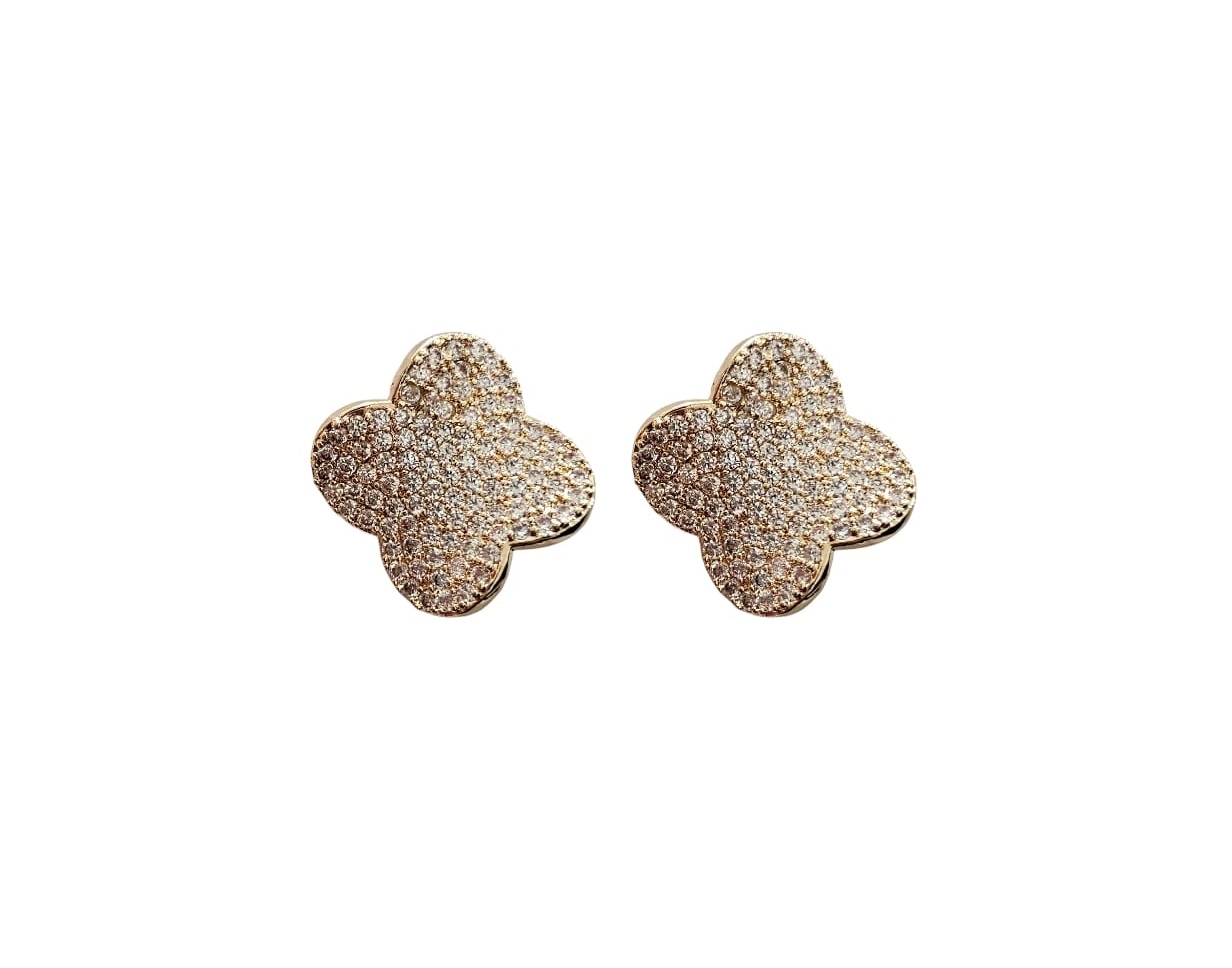 BRINCO TREVO CURVO CRAVEJADO BANHADO A OURO
