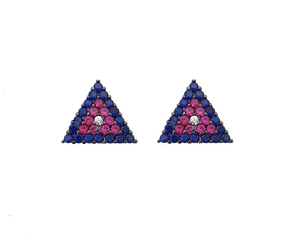 BRINCO TRIANGULAR COLORS BANHADO A RÓDIO BRANCO