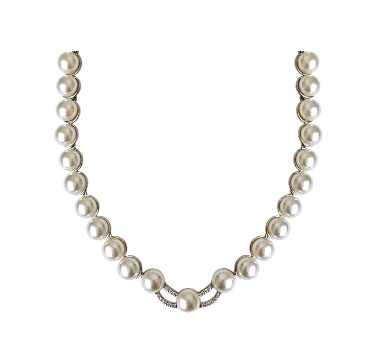 Choker em Pérolas com Duas Fileiras Cravejadas Banhado a Ródio Branco